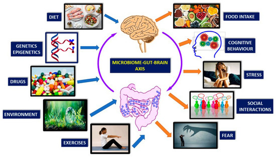 The gut microbiota modulates the gut–brain axis, a bidirectional communication system between the enteric and central nervous systems, and can influence various brain functions [30]. For example, alterations in the gut microbiota have been linked to mood disorders like depression and anxiety, suggesting a role for the microbiome in modulating emotional responses [57,58]. However, more research is needed to test these hypotheses and understand the precise mechanisms involved.