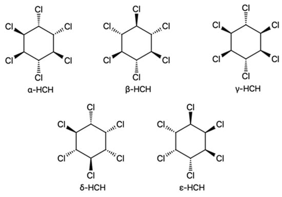 - Willett, K.L.; Ulrich, E.M.; Hites, R.A. Differential Toxicity and Environmental Fates of Hexachlorocyclohexane Isomers. Environ. Sci. Technol. 1998, 32, 2197–2207. [Google Scholar] [CrossRef]