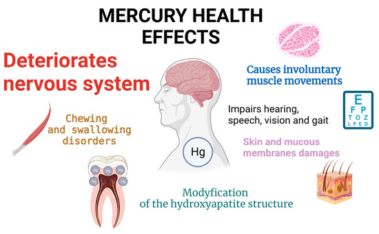 - Cyran, M. Wpływ środowiskowego narażenia na rtęć na funkcjonowanie organizmu człowieka. Med. Srod. 2013, 16, 55–58. [Google Scholar]