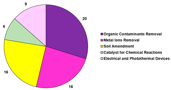 Main relative applications of bamboo-derived BC. Numbers refer to the existing publications reporting that specific application.