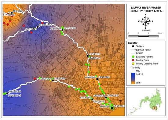 Map of turbidity values in Silway River stations.