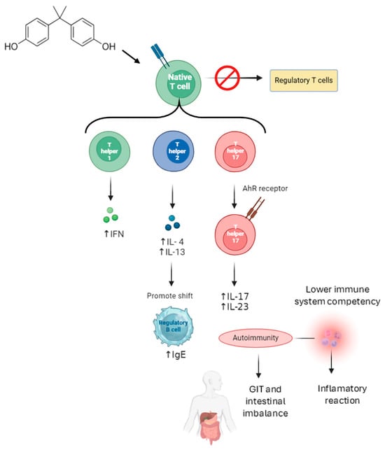 BPA may potentiate autoimmunity by activating Th1, Th2 and Th17 cells. Aryl hydrocarbon receptors (AhRs) play a key role in modulating immune responses, leading to the production of Th17 cells, which are critical in several autoimmune diseases.
