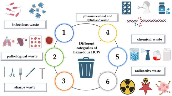 The European Union’s regulatory framework classifies HCW into three categories: infectious waste, which includes materials contaminated with pathogens; chemical waste, encompassing items containing hazardous chemicals; and pharmaceutical waste, which pertains to expired, unused, or contaminated medications and their packaging [5].