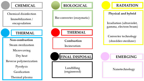 - Mazzei, H.G.; Specchia, S. Latest Insights on Technologies for the Treatment of Solid Medical Waste: A Review. J. Environ. Chem. Eng. 2023, 11, 109309. [Google Scholar] [CrossRef]