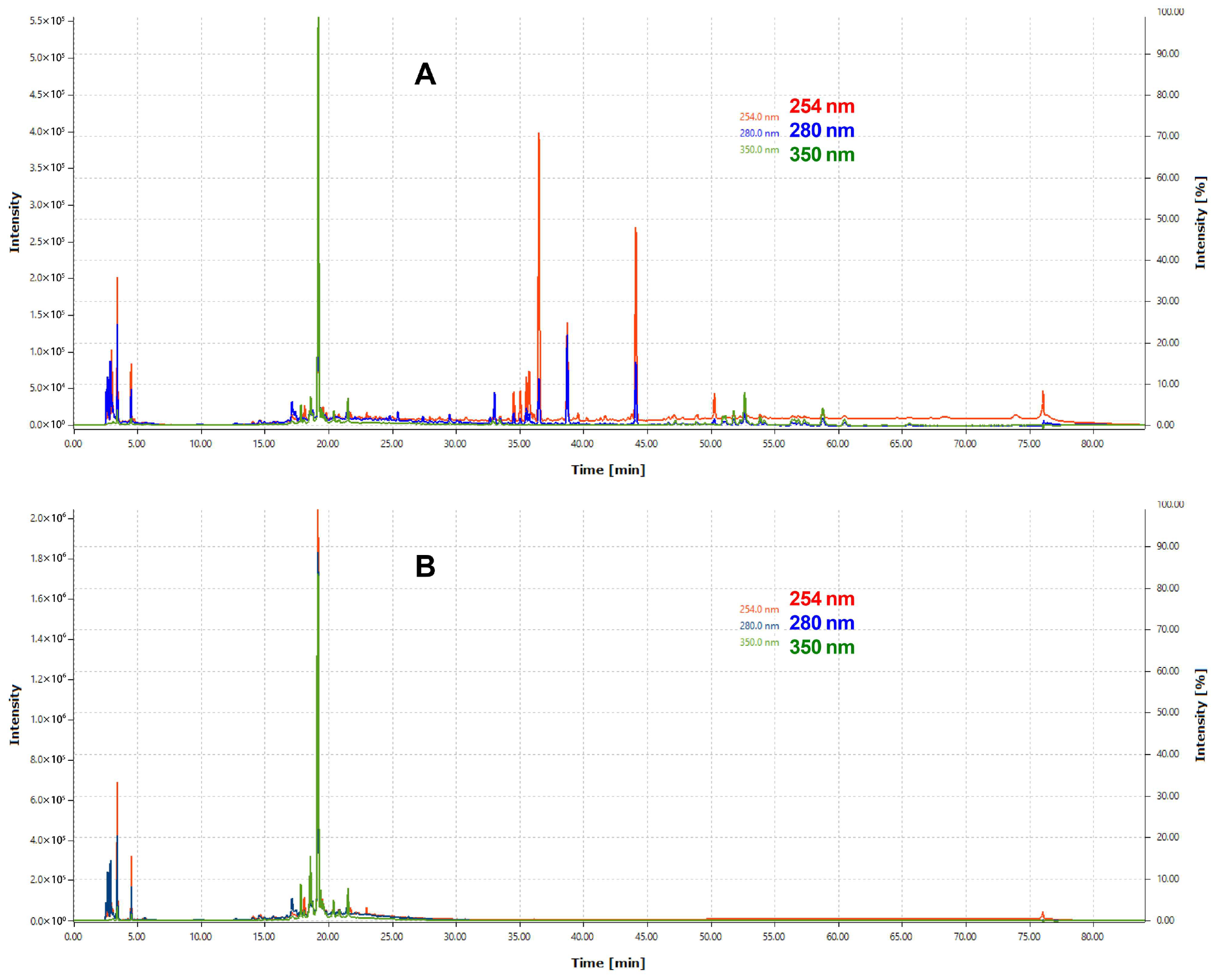 Extract/Fraction | Parameters | 254 nm | 280 nm | 350 nm |