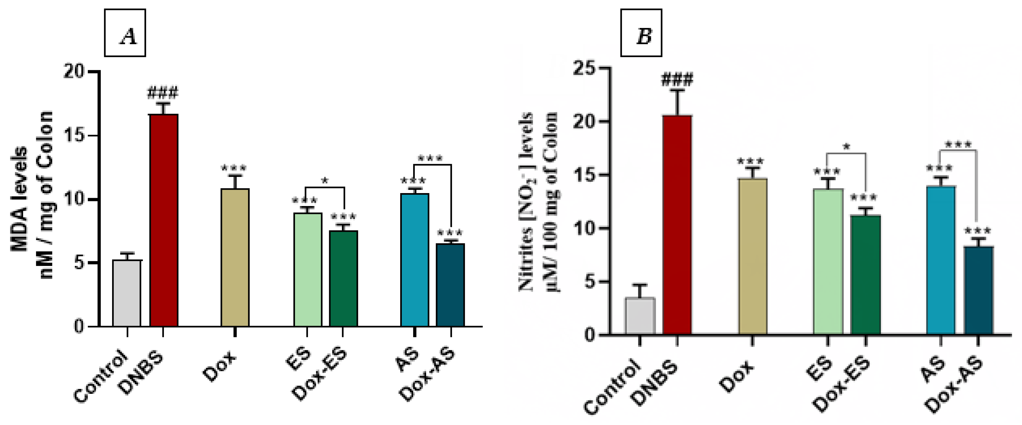 3.6. Lipid Peroxidation and Nitrosative Stress Markers