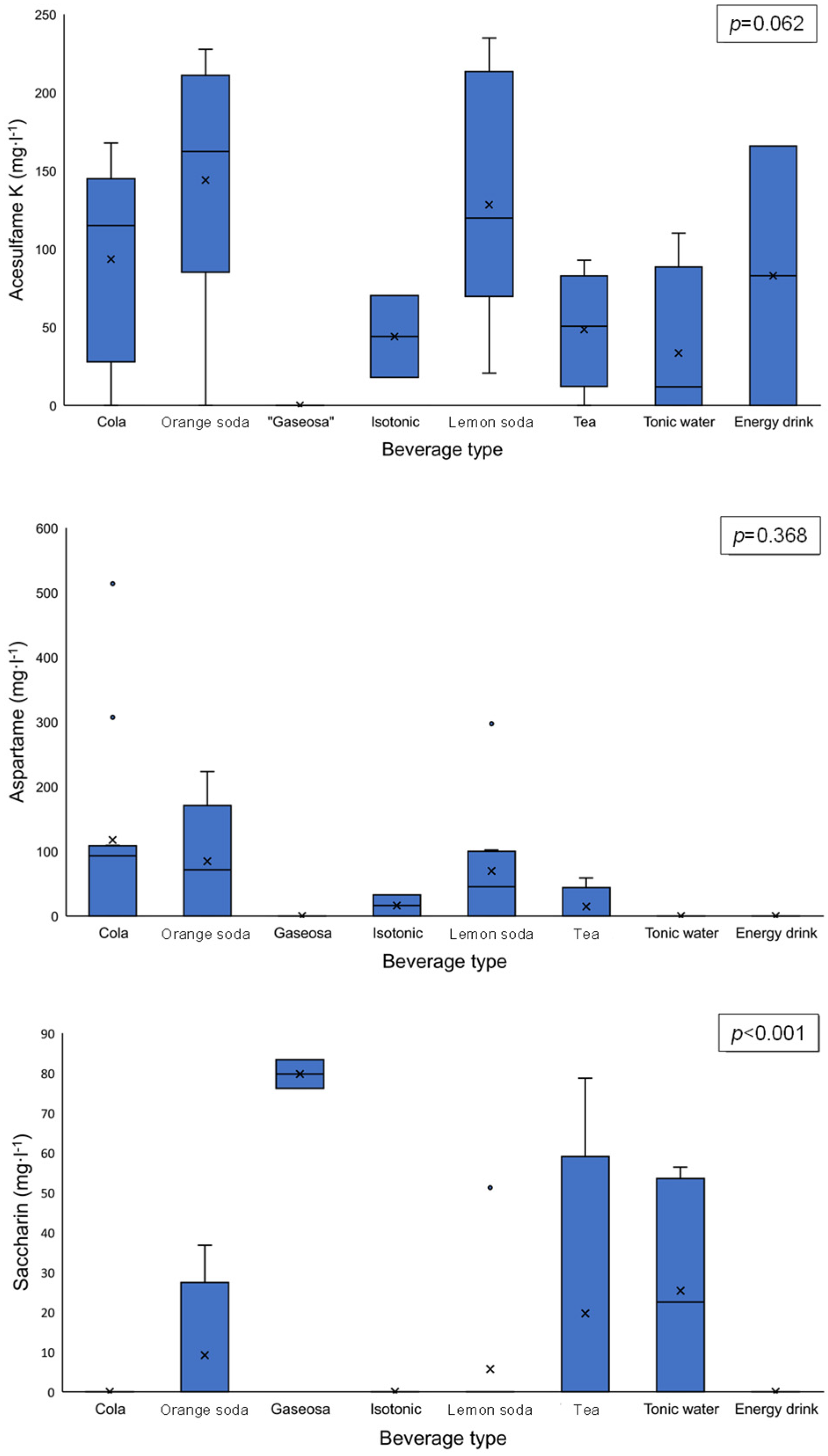 Sample | Acesulfame K | Aspartame | Saccharin | |