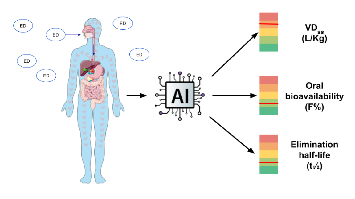 To limit the costs of such experiments and still provide relevant information for decision-makers in the field of drug discovery and chemical risk assessment, in silico models capable of predicting key TK/PK properties, notably oral bioavailability and volume of distribution (VD), are commonly developed for initial estimation [4].