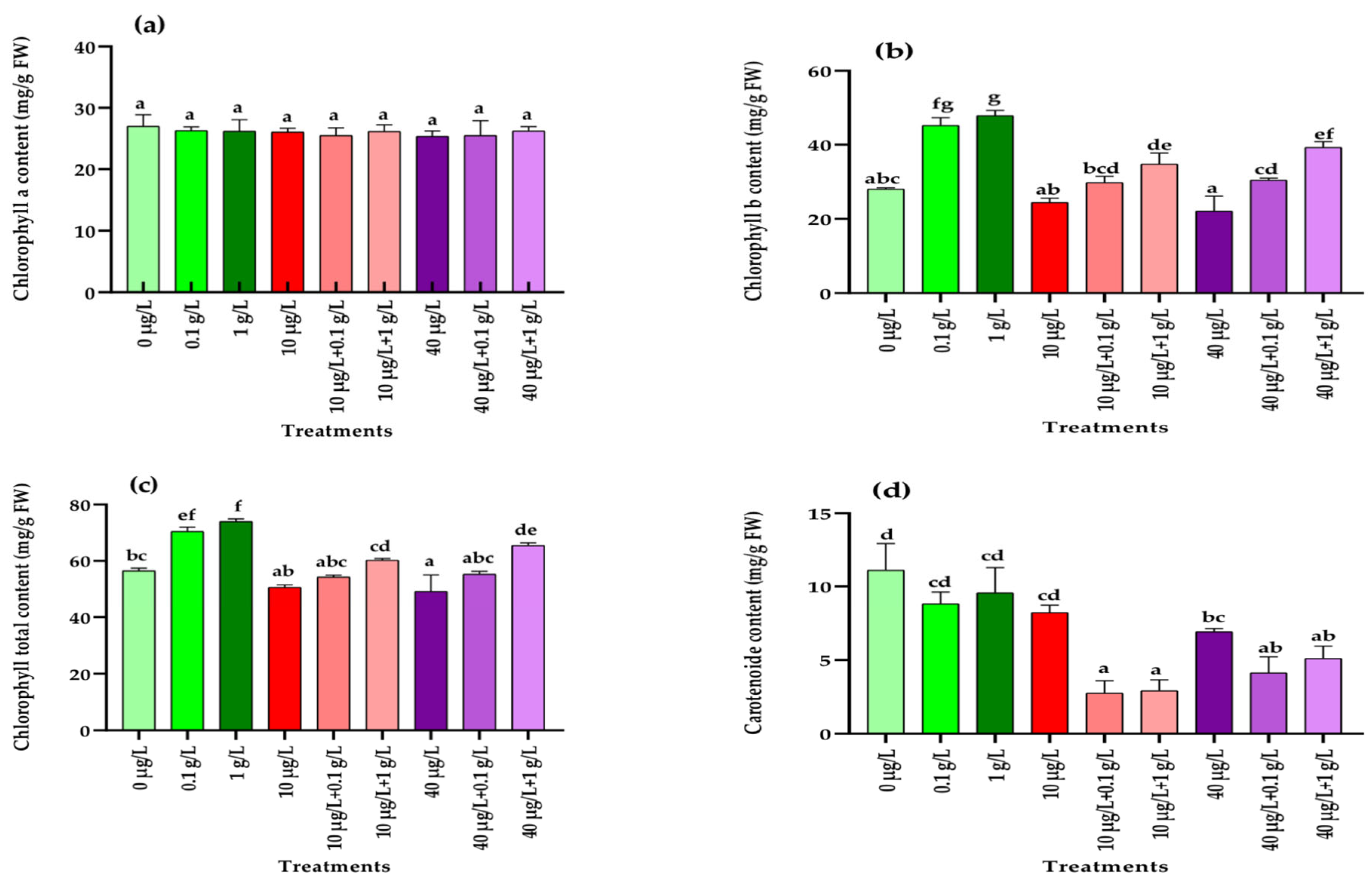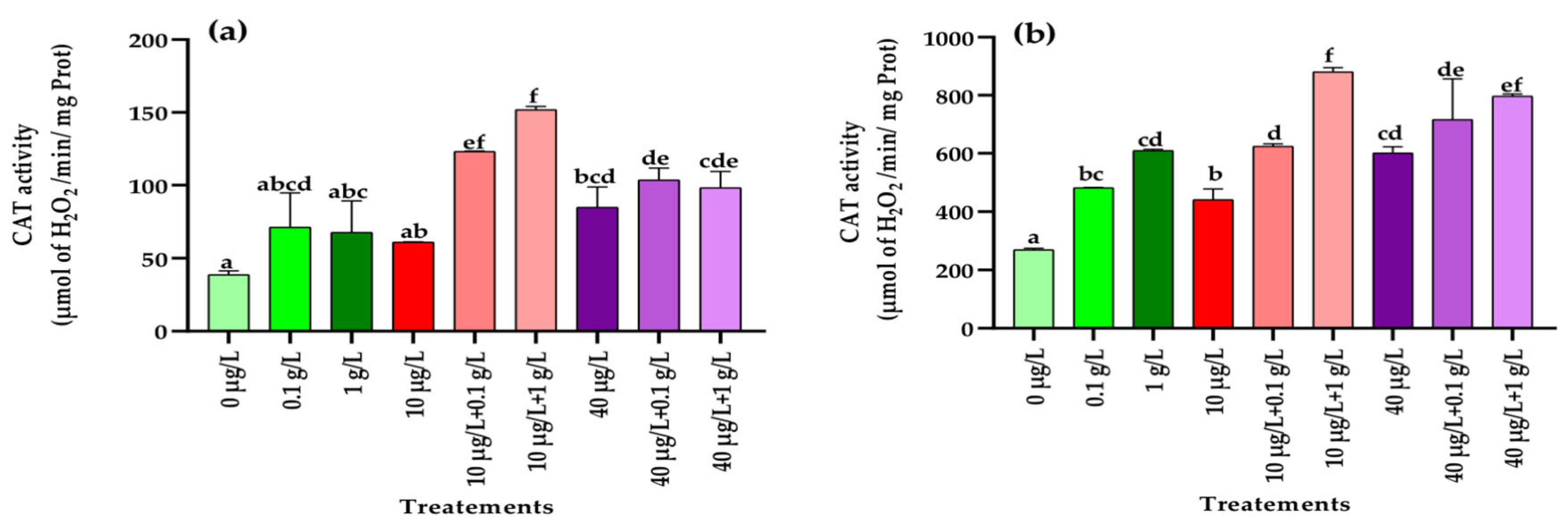 | 40 µg/L of MCs + 1 g/L of LP | 0.132 ± 0.001 a | 2.29 ± 0.17 ab | 1.53 ± 0.48 a | 0.53 4 ± 0.011 ab | 14.23 + 0.68 a | 220.76 + 3.82 d |