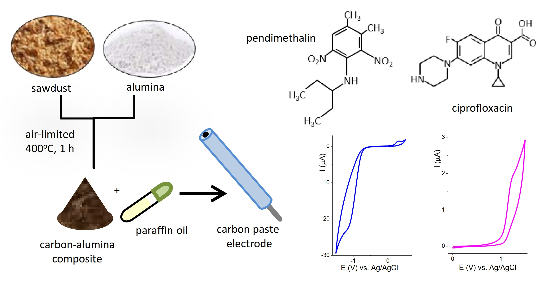 - Hernandez, P.; Aguilar-Lira, G.Y.; Islas, G.; Rodriguez, J.A. Development of a new voltammetric methodology for the deter mination of ciprofloxacin in beef samples using a carbon paste electrode modified with nafion and fullerenes. Electroanalysis 2021, 33, 1539–1546. [Google Scholar] [CrossRef]