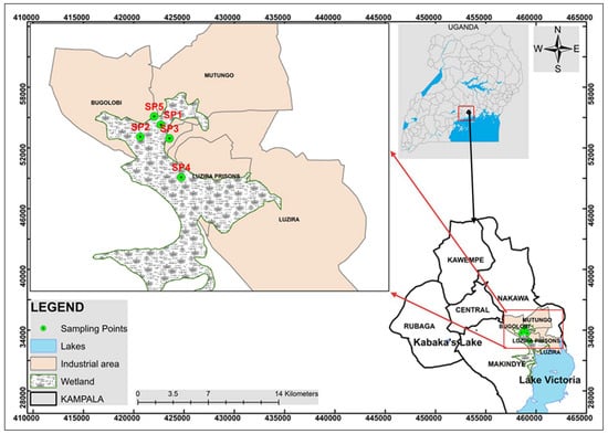 The LIA hosts numerous small-to-medium scale industries, such as metal fabrication workshops, plastics, wood and paper products, food and beverage processing, pharmaceuticals, logistics/warehousing, chemical and leather tanning activities. The major industries in LIA include Cipla Quality Chemical Industries Limited (a WHO-approved facility manufacturing antiretroviral drugs and other pharmaceuticals) [], Uganda Breweries (a subsidiary of the East African Breweries), Afroplastics Enterprises Limited (manufacturers of plastic items) and Dei Industries International (producers of first-grade wheat flour) []. The industrial effluents and runoff from these industries drain into the adjacent wetlands and Murchison Bay of Lake Victoria [,].