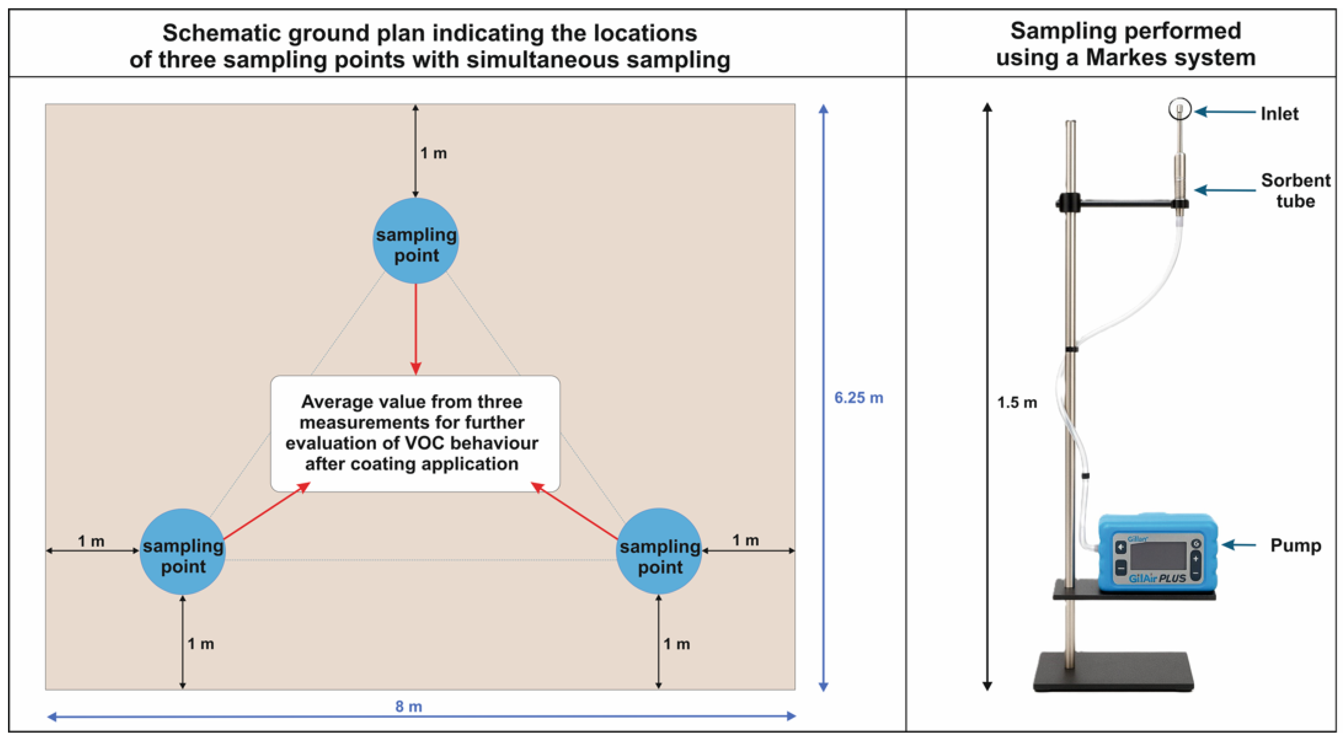 - ISO 16000-5:2007; Indoor Air Part 5: Sampling Strategy for Volatile Organic Compounds (VOCs). International Organization for Standardization: Geneva, Switzerland, 2007.