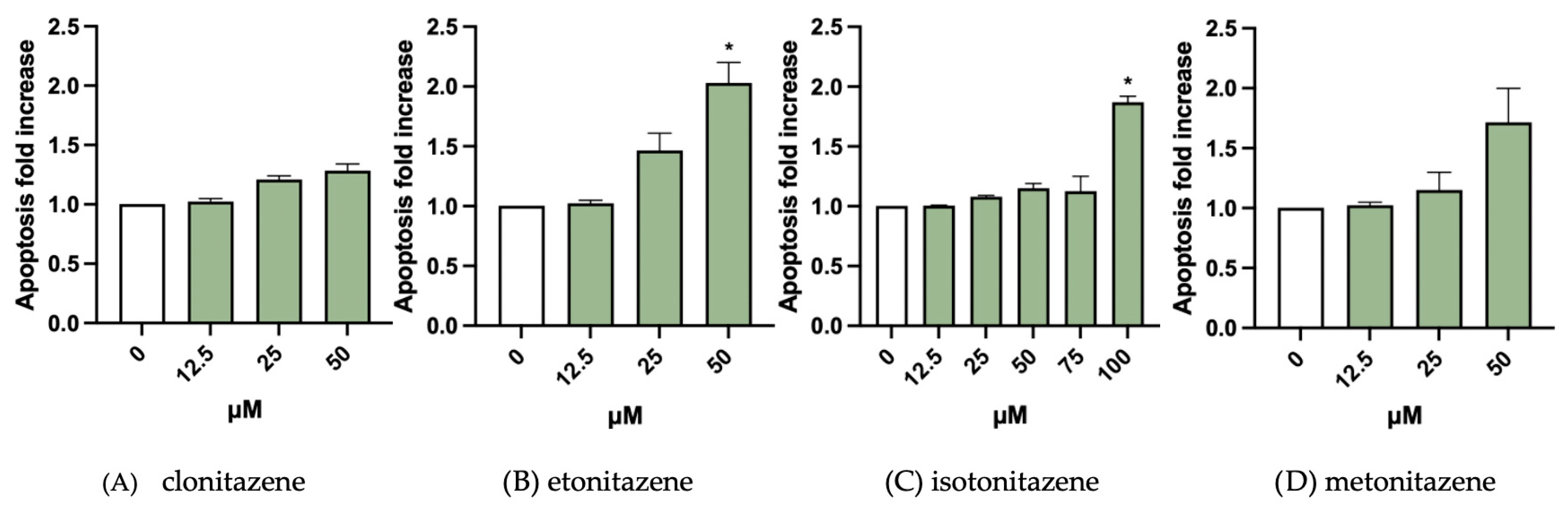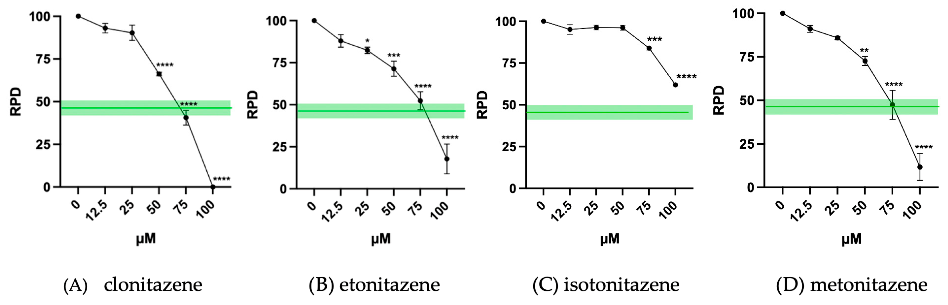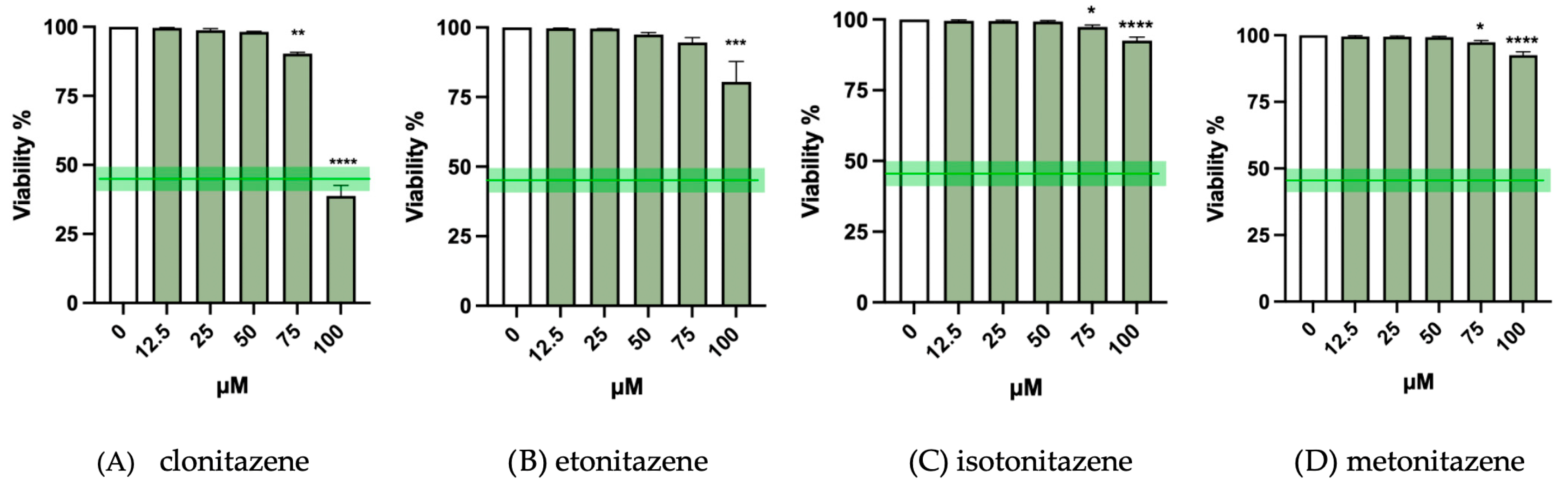 | clonitazene | 25 µM and 50 µM |