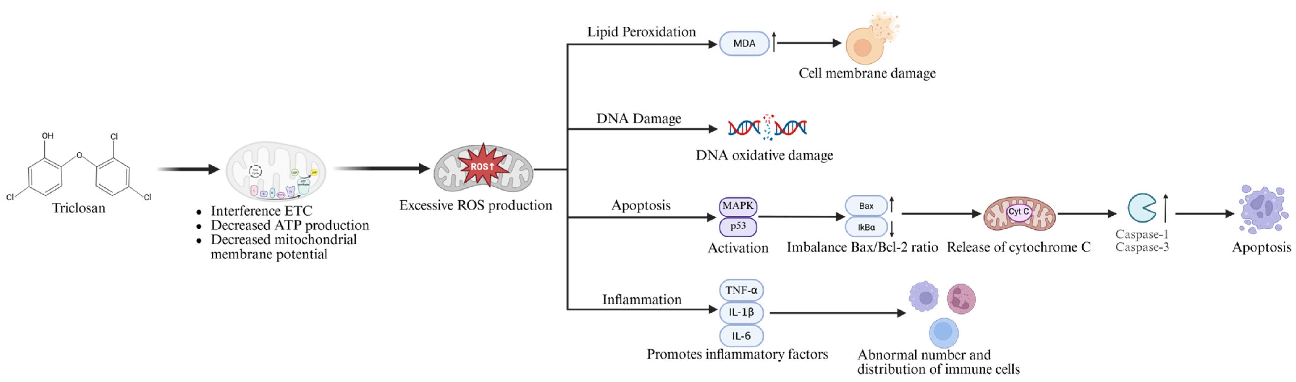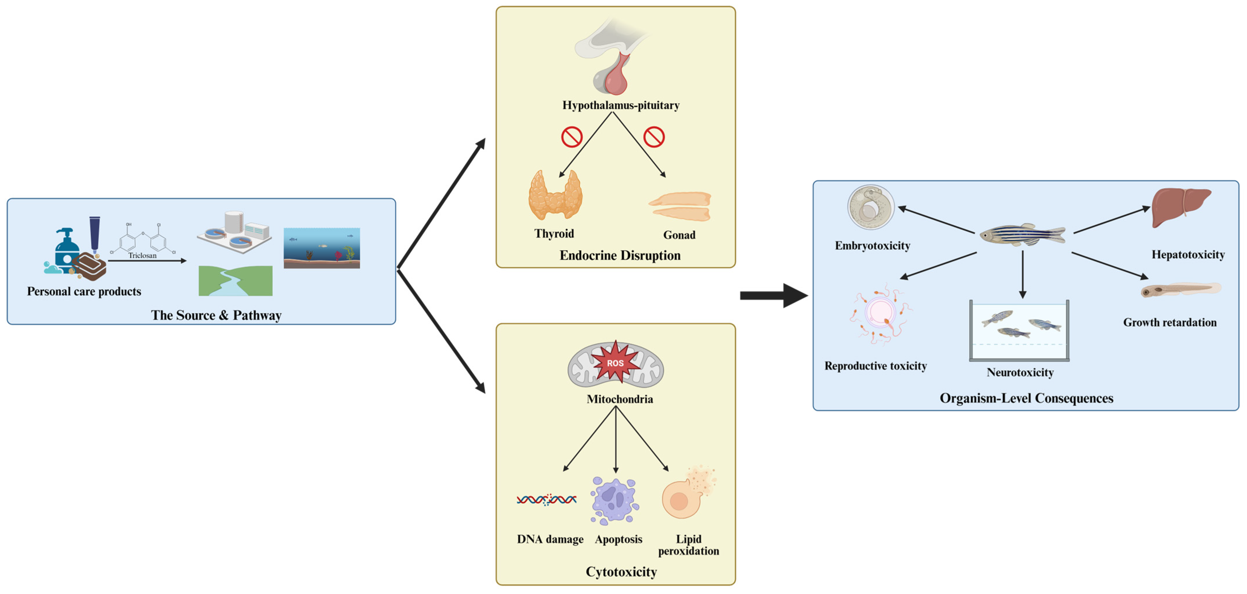 - Wang, F.; Liu, F. Mechanism-based understanding of the potential cellular targets of triclosan in zebrafish larvae. Environ. Toxicol. Pharmacol. 2023, 102, 104255. [Google Scholar] [CrossRef]