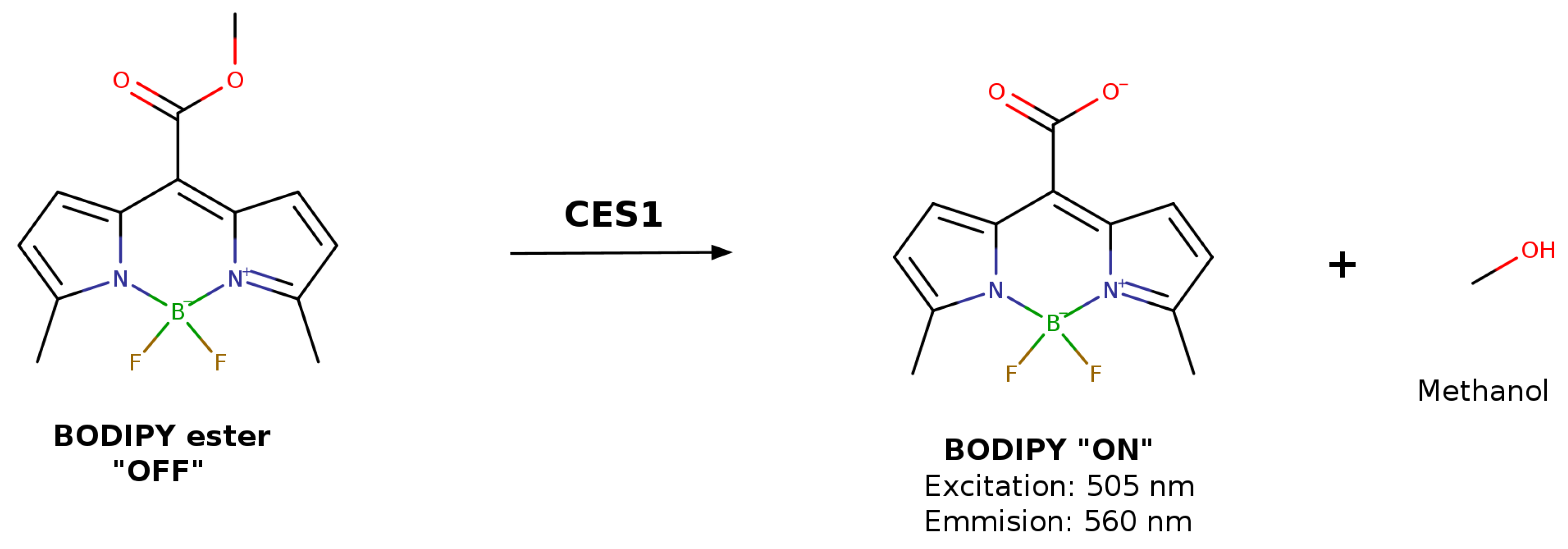 - Dai, J.; Hou, Y.; Wu, J.; Shen, B. A minireview of recent reported carboxylesterase fluorescent probes: Design and biological applications. ChemistrySelect 2020, 5, 11185–11196. [Google Scholar] [CrossRef]