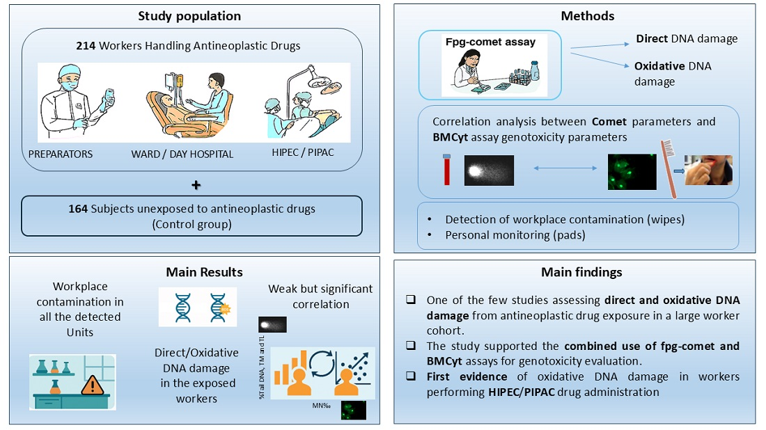 Ursini CL, Di Gennaro G, Buresti G, Maiello R, Fresegna AM, Ciervo A, Gentile M, Di Basilio V, Beltramini S, Gaggero D, et al. Cross-Sectional Multicenter Biomonitoring Study on Genotoxicity and Oxidative DNA Damage in Oncology Healthcare Workers from Seven Italian Hospitals. Journal of Xenobiotics. 2026; 16(1):12. https://doi.org/10.3390/jox16010012