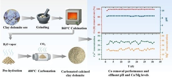 Carbonation of Calcined Clay Dolomite for the Removal of Co(II): Performance and Mechanism