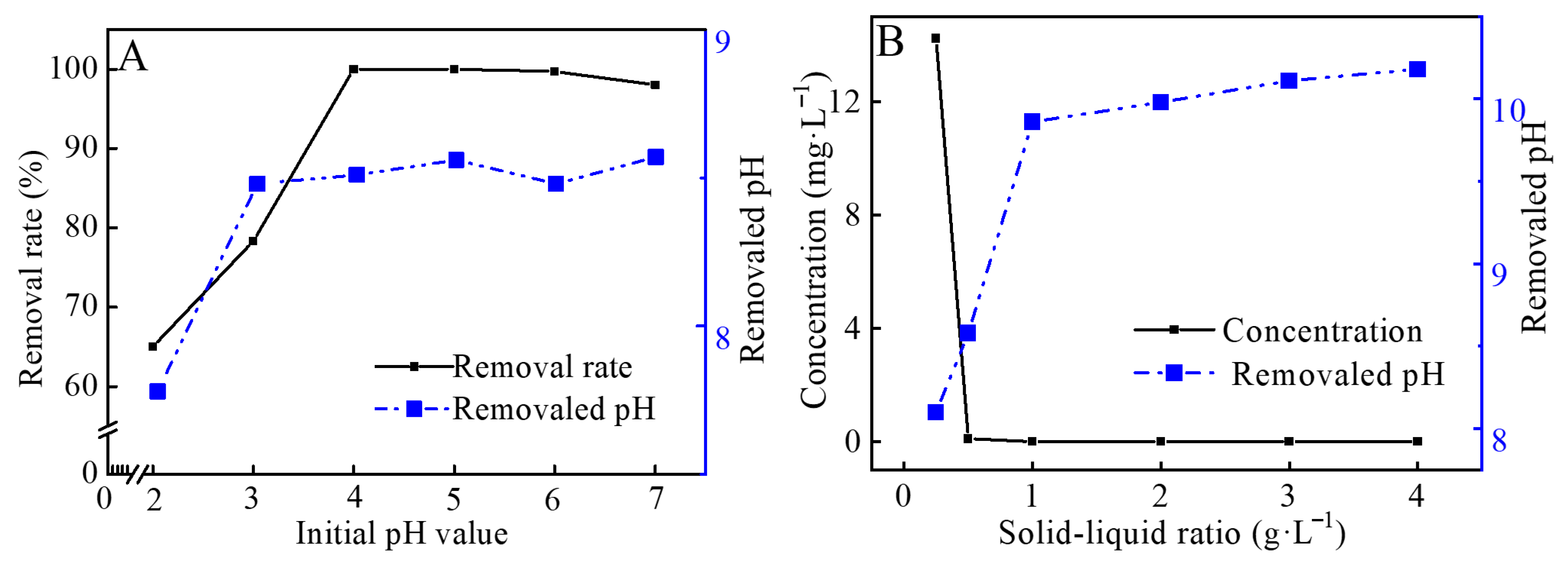 3.3.2. Effects of Initial pH and Solid-Liquid Ratio