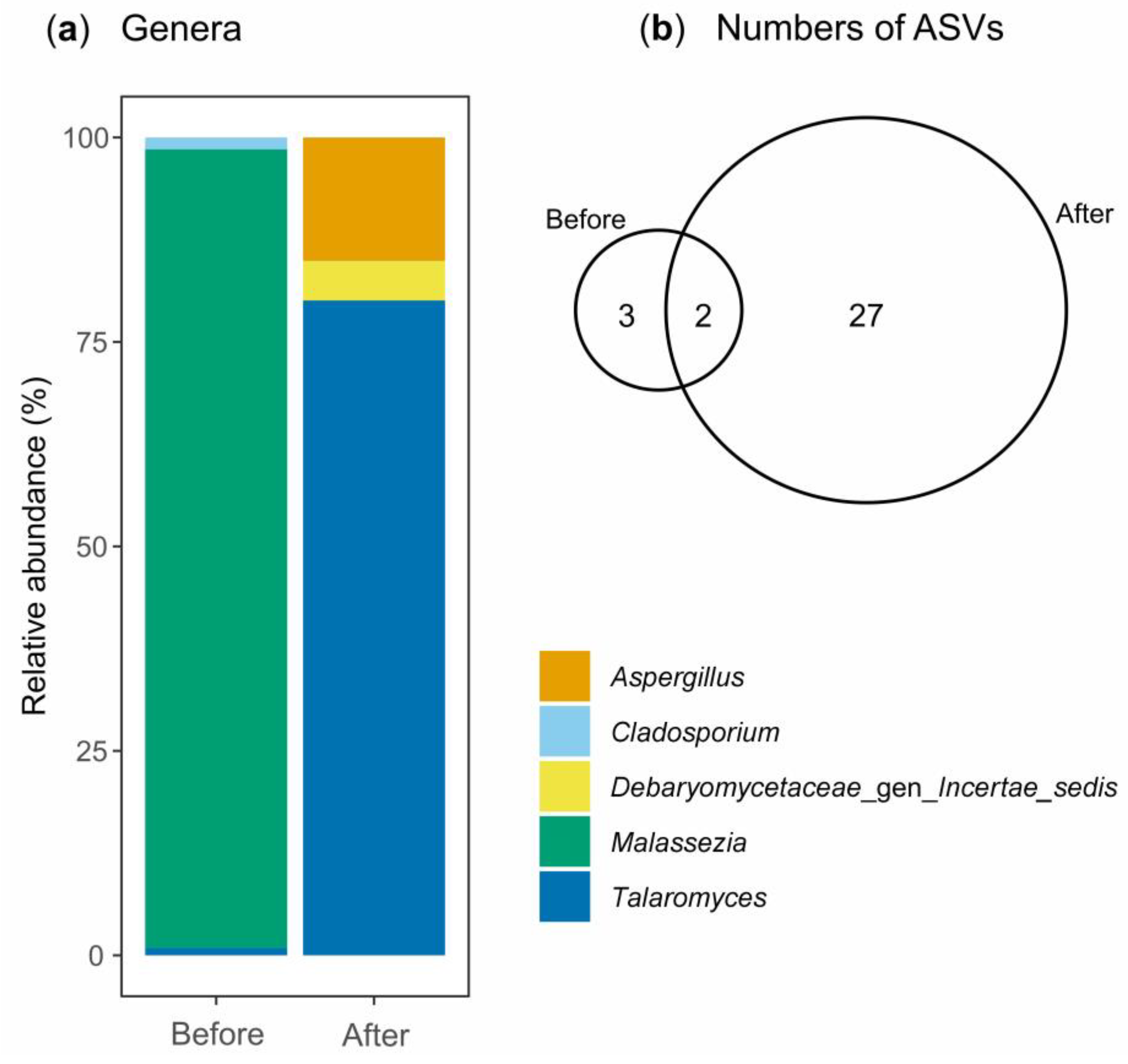 - Rahimlou, S.; Amend, A.S.; James, T.Y. Malassezia in environmental studies is derived from human inputs. mBio 2025, 16, e0114225. [Google Scholar] [CrossRef] [PubMed]