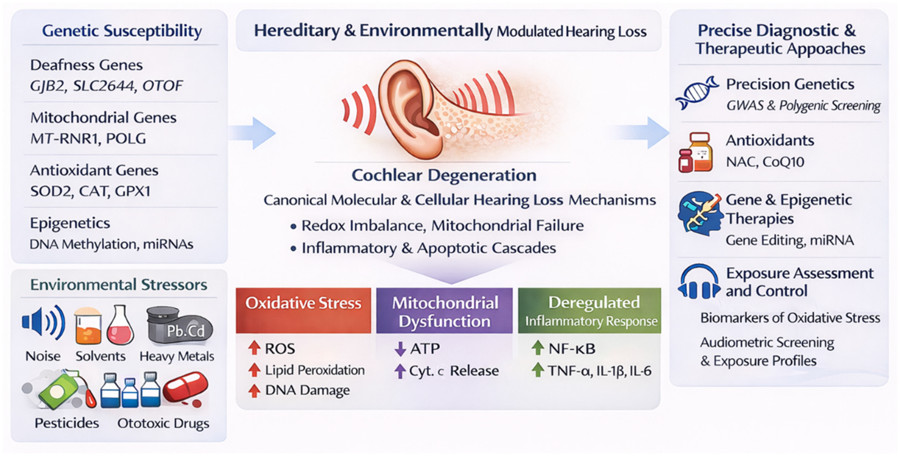 Chicago/Turabian StyleEsteves, Francisco, and Helena Caria. 2026. "Genetic and Environmental Factors Shaping Hearing Loss: Xenobiotics, Mechanisms and Translational Perspectives" Journal of Xenobiotics 16, no. 1: 27. https://doi.org/10.3390/jox16010027