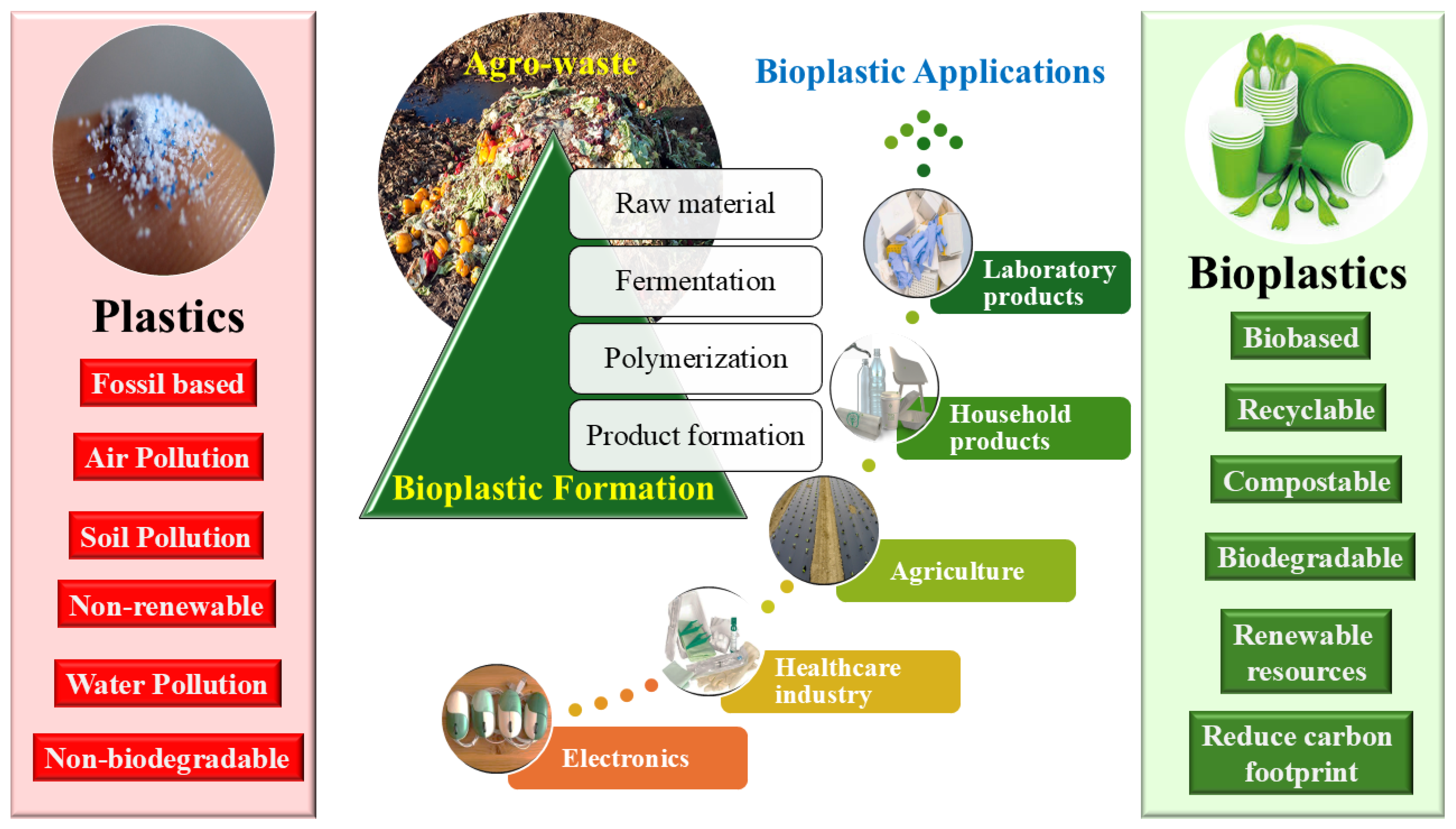 - Mandal, M.; Roy, A.; Mitra, D.; Sarkar, A. Possibilities and prospects of bioplastics production from agri-waste using bacterial communities: Finding a silver lining in waste management. Curr. Res. Microb. Sci. 2024, 7, 100274. [Google Scholar] [CrossRef]
