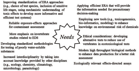 Issues requiring attention by ecotoxicology are thus legion and the needs to be addressed are equally enormous. Figure 4 lists some of these (self-explanatory) demands that have been persuasively described in recent publica- tions.[68,69,70]