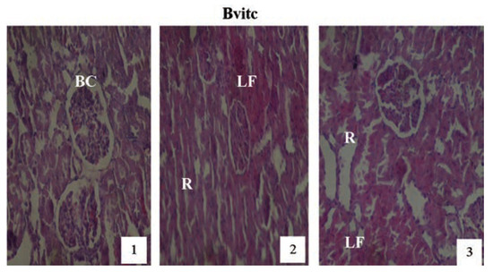 −) levels increased in a dose dependent manner in treated rats when compared with untreated control group. Serum total protein decreased significantly in experimental rats when compared with control. However, cholesterol and triglycerides showed no significant difference when compared with control. Histopathological examination of hepatocytes in treated rats was characterized by mild periportal inflammatory cells and cytoplasmic degeneration. Furthermore, histopathological examination of rat kidneys revealed inflammatory cells, congested vessel and interstitial hemorrhage in rats treated with Solignum
