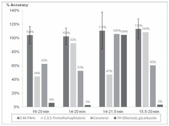 Recovery and accuracy for polycyclic aromatic hydrocarbons in the targeted fraction