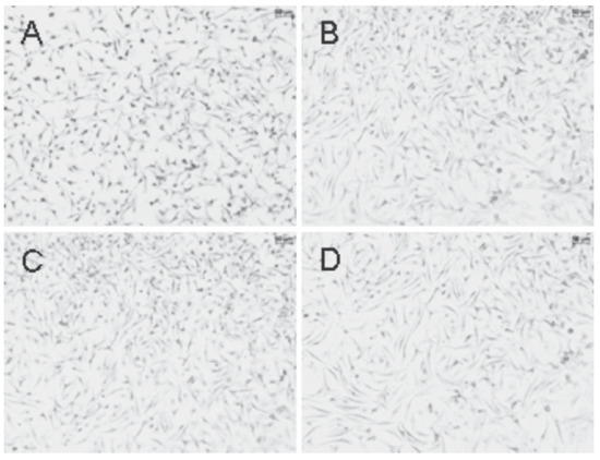 The extension of pseudopods by hemocytes and their adhesion capacity play key roles in the cellular migration and the immune defence of mollusks. The morphological results obtained in this study were presented in Figure 1. No morphological changes were observed with increasing pharmaceutical concentrations. Cultured cells displayed an elongated shape with large pseudopods and were mostly interconnected whatever the pharmaceutical tested. Concomitantly, results of MTT assays showed no effects of pharmaceuticals on cell viability under our experimental conditions (data not shown).
