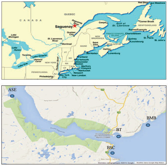 - Lemaire, N; Pelletier, E. Chemical and microbial contamination baseline in the Saguenay-St. Lawrence Marine Park (Eastern Canada): concentrations and fluxes from land-based sources. Arch Environ Contam Toxicol 2013, 65, 421–33. [Google Scholar]