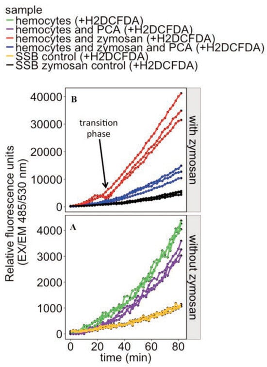 - Moss, B.; Allam, B. Fluorometric measurement of oxidative burst in lobster hemocytes and inhibiting effect of pathogenic bacteria and hypoxia. J Shellfish Res 2006, 25, 1051–1057. [Google Scholar]