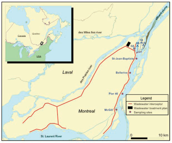 - Marcogliese, D.J.; Blaise, C.; Cyr, D.; de Lafontaine, Y.; Fournier, M.; Gagné, F.; et al. Effects of a major municipal effluent on the St. Lawrence River: A case study. AMBIO J 2015, 44, 257–74. [Google Scholar] [CrossRef] [PubMed]