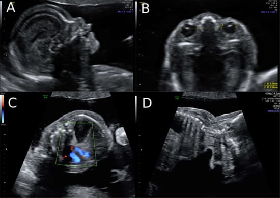 - Daum, H.; Meiner, V.; Elpeleg, O.; Harel, T.; Bar-Or, L.; Eilat, A.; Fahham, D.; Gur, M.; Hacohen, N.; Kimchi, A. Fetal exome sequencing: Yield and limitations in a tertiary referral center. Ultrasound Obstet Gynecol. 2019, 53, 80–86. [Google Scholar] [CrossRef] [PubMed]