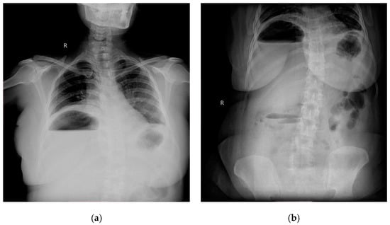 - Matsuyama, S.; Satoh, H.; Yunotani, S.; Mashima, H.; Haraoka, S.; Harada, S.; Hisatsugu, T. An unusual presentation of spontaneous pneumoperitoneum secondary to the rupture of a gas-containing pyogenic liver abscess: Report of a case. Surg. Today 1994, 24, 63–66. [Google Scholar] [CrossRef] [PubMed]