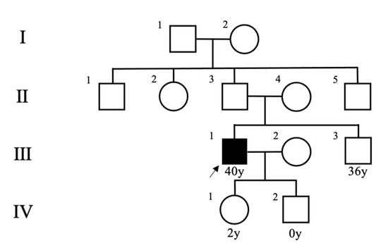 Pedigree of the patient’s family. An arrow indicates the patient.