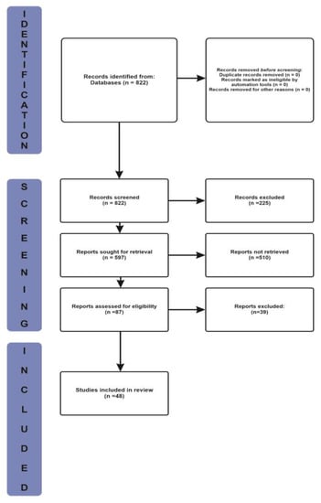 A total of 822 results (416 from Google Scholar and 406 from PubMed) were obtained from the broad search term. Articles to be included in the review were selected from these 87 results based on the inclusion and exclusion criteria listed in Table 1. A total of 48articles were selected.