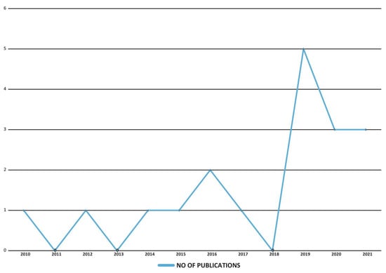 Figure 2 shows the number of articles published each year from 2010 to 2021, those were selected for this review.