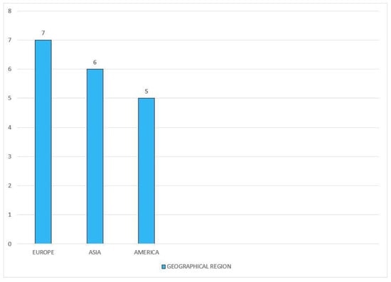 The corresponding Figure 4 shows the numbers of publications in different geographical locations that were selected for this review.