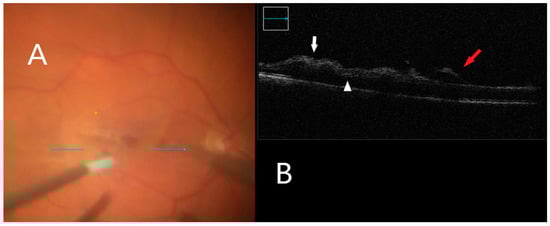 - Ehlers, J.P.; Han, J.; Petkovsek, D.; Kaiser, P.K.; Singh, R.P.; Srivastava, S.K. Membrane Peeling-Induced Retinal Alterations on Intraoperative OCT in Vitreomacular Interface Disorders From the PIONEER Study. Investig. Ophthalmol. Vis. Sci. 2015, 56, 7324–7330. [Google Scholar] [CrossRef]