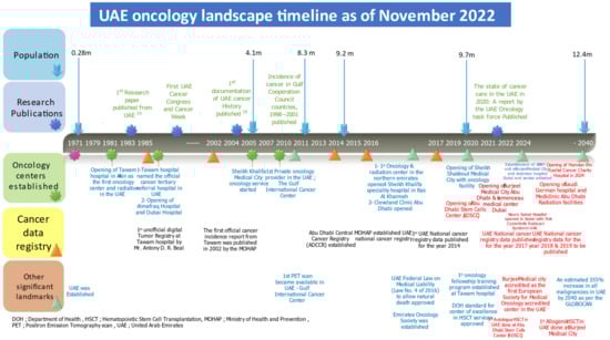 UAE oncology landscape timeline as of November 2022.