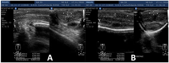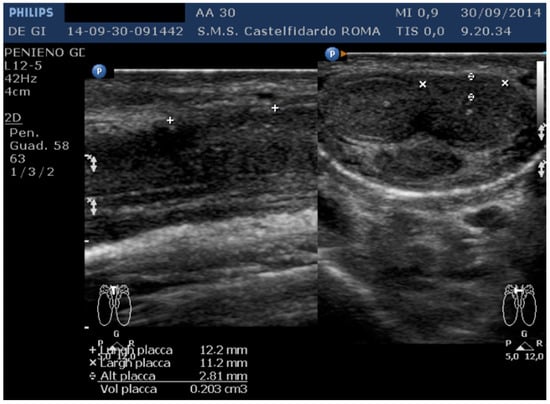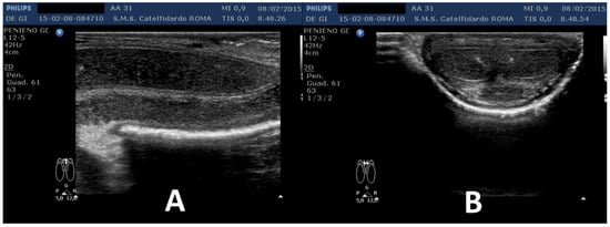 - McCauley, J.F.; Dean, R.C. Diagnostic utility of penile ultrasound in Peyronie’s disease. World J. Urol. 2020, 38, 263–268. [Google Scholar] [CrossRef]