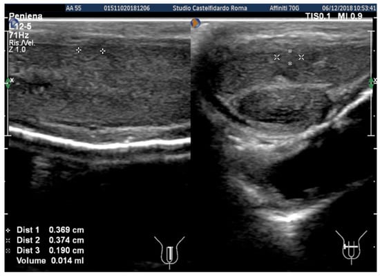 - Parmar, M.; Masterson, J.M.; Masterson, T.A. 3rd. The role of imaging in the diagnosis and management of Peyronie’s disease. Curr. Opin Urol. 2020, 30, 283–289. [Google Scholar] [CrossRef] [PubMed]