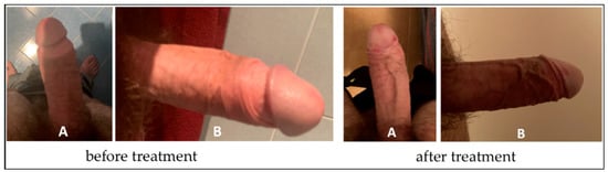 - Paulis, G.; De Giorgio, G. Patients with Peyronie’s disease achieve complete plaque regression after multimodal treatment with antioxidants: A case series. J. Med. Case Rep. 2022, 16, 359. [Google Scholar] [CrossRef]