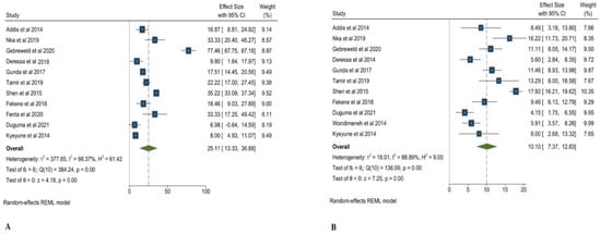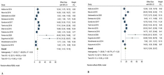 | Fenta et al. 2020 [22] | 11.53 (8.56–14.51) | 92.81 | ≤0.001 |