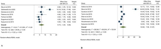 | Fekene et al. 2018 [21] | 10.89 (7.63–14.16) | 94.38 | ≤0.001 |