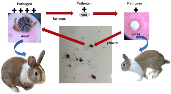 - Kondo, M.; Matsushima, Y.; Nakanishi, T.; Habe, K.; Yamanaka, K. Investigation of pathogens injected into the human body by ticks. Exp. Dermatol. 2022, 31, 1014–1015. [Google Scholar] [CrossRef] [PubMed]