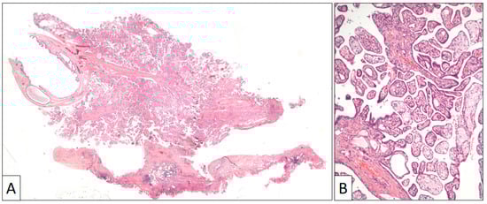 (A) Panoramic view of a papillary benign mesothelioma showing an exophytic architecture and absence of infiltrative growth into the tunica vaginalis. (B) Papillary arrangement of the lesion (original magnification, ×100).