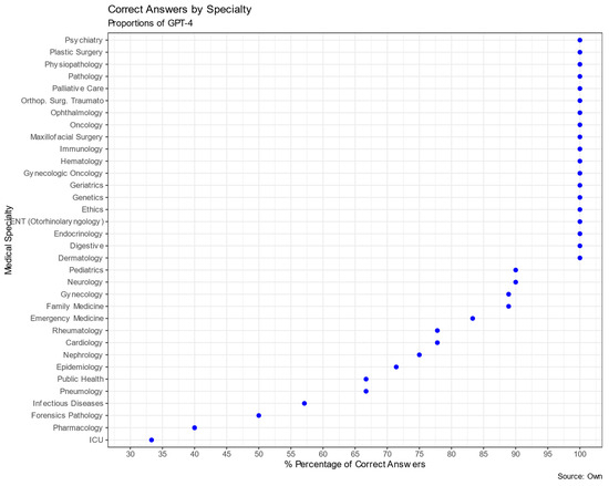 Proportions of GPT-4 correct answers by specialty.