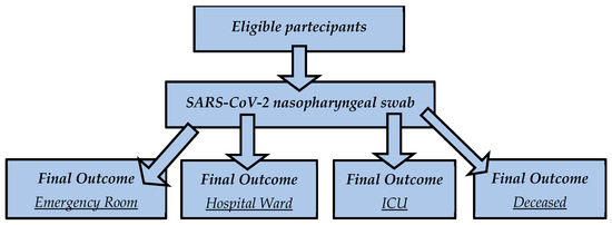 Thus, the main aim and novelty of this study were to investigate the “classical” routine blood biomarkers in the same cohort of patients to correlate these data with the severity of their clinical outcomes. We gathered data from 445 COVID-19 clinical records from the Emergency Room of “Policlinico Umberto I”, at the University Hospital of Sapienza University of Rome. According to their clinical outcomes, the 445 patients were divided into four groups: (1) the emergency group (patients who had mild forms and were quickly discharged); (2) the hospital ward group (patients who were admitted to the emergency section and were hospitalized in a COVID-19 ward); (3) the intensive care unit (ICU) group (patients who required intensive assistance after admission to the emergency section); (4) the deceased group (patients who had a fatal outcome after admission to the emergency section).