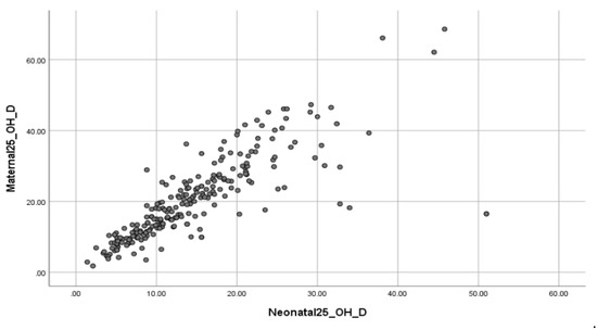 Correlation of maternal–neonatal 25(OH)D with Pearson coefficient.